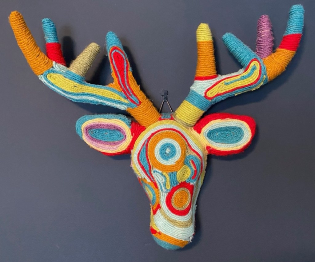 One of my first experiments wrapping a cardboard form of a reindeer (?)….